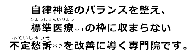 安全性と再現性が担保される一方、画一的な手順のため、不定愁訴など個人差の大きい症状では対応対応できない場合があります。
